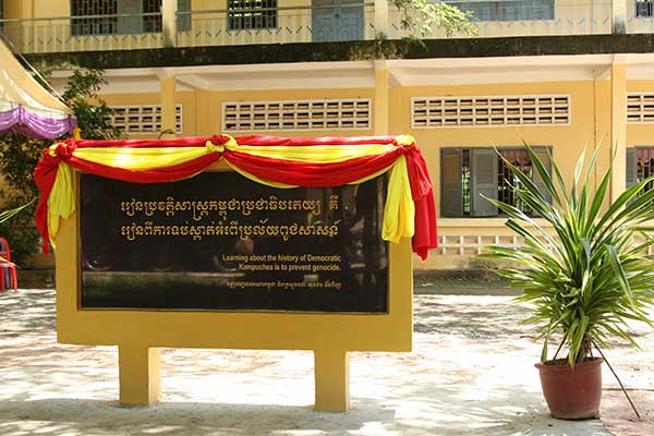 មជ្ឈមណ្ឌលឯកសារ កម្ពុជា ធ្វើការសហការជាមួយក្រសួងអប់រំ យុវជន និងកីឡា គ្រោងរៀបចំតម្លើងផ្ទាំង ពាក្យស្លោកស្ដីពីការ ប្រឆាំងនឹងអំពើប្រល័យ ពូជសាសន៍នៅគ្រប់វិទ្យាល័យទាំងអស់ទូទាំង ប្រទេសនាពេលអនាគត ក្នុងន័យអប់រំ និងរម្លឹកពីការចងចាំពីរបបខ្មែរក្រហម និងដើម្បីទប់ស្កាត់ អំពើប្រល័យពូជសាសន៍មិនឱ្យកើតឡើងជាថ្មីម្ដង ទៀត។ ជាមួយគ្នានេះដែរ ពាក្យស្លោកនេះមានអត្ថន័យគ្រប់គ្រាន់ក្នុងការជម្រុញនិងលើកទឹកចិត្ដដល់សិស្សា នុសិស្សដែលជាកេ្មងជំនាន់ក្រោយឱ្យនិយាយរឿងរ៉ាវនៅក្នុងរបបខ្មែរក្រហមជាមួយឪពុកម្ដាយ ជីដូនជីតា និងបងប្អូនរបស់ខ្លួនដើម្បីស្វែងយល់បន្ថែមពីរបបនេះ ក្នុងន័យលើកកម្ពស់ការយល់ដឹងឱ្យកាន់តែទូលំ ទូលាយថែមទៀត។ ម្យ៉ាងវិញទៀត សិស្សានុសិស្សអាចរៀន សូត្រពីការអត់ឱន អធ្យាស្រ័យគ្នា ផ្សះផ្សា គ្នា ដើម្បីបញ្ចប់ការរើងអើង រវាងជនរងគ្រោះនិងអតីតកម្មាភិបាលខ្មែរក្រហម និងដើម្បីទប់ស្កាត់អំពើ ប្រល័យពូជសាសន៍នៅក្នុងប្រទេសកម្ពុជា ក៏ដូចជានៅលើពិភពលោកទាំងមូល។